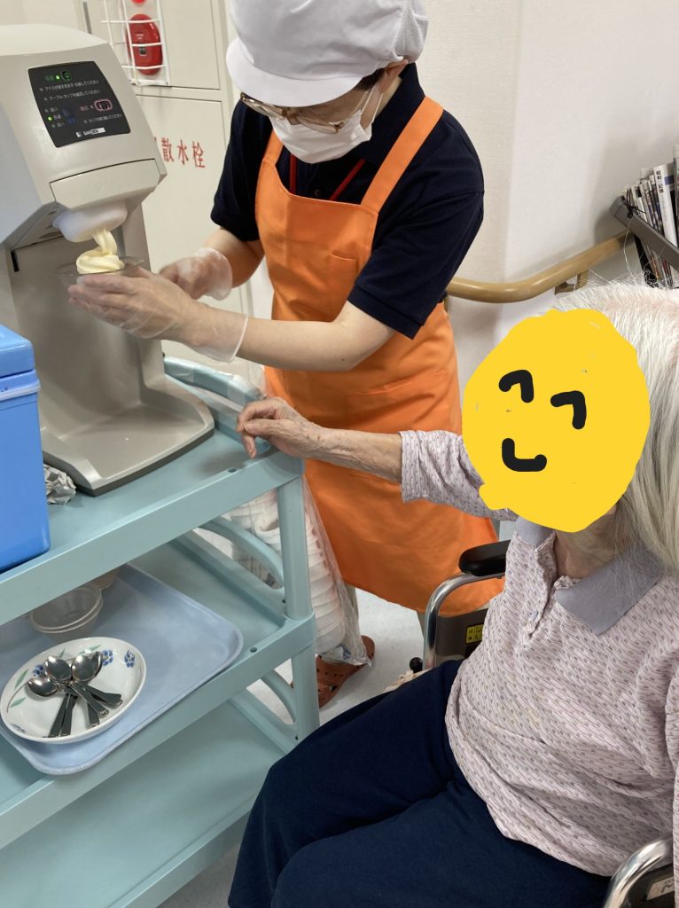 9月10日は2階フロアの皆様の近くでソフトクリーム会を行いました。