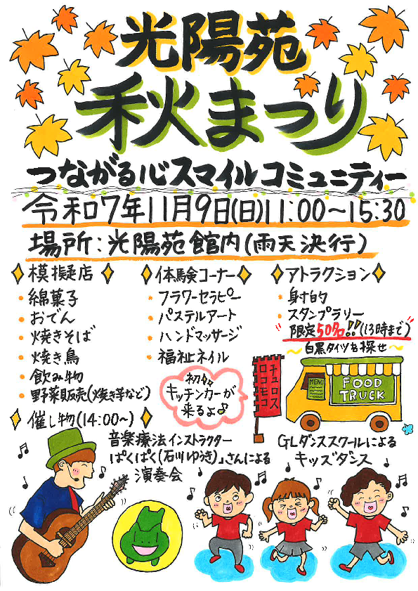 令和7年11月9日(日)11:00~15:30に秋まつりを開催いたします。