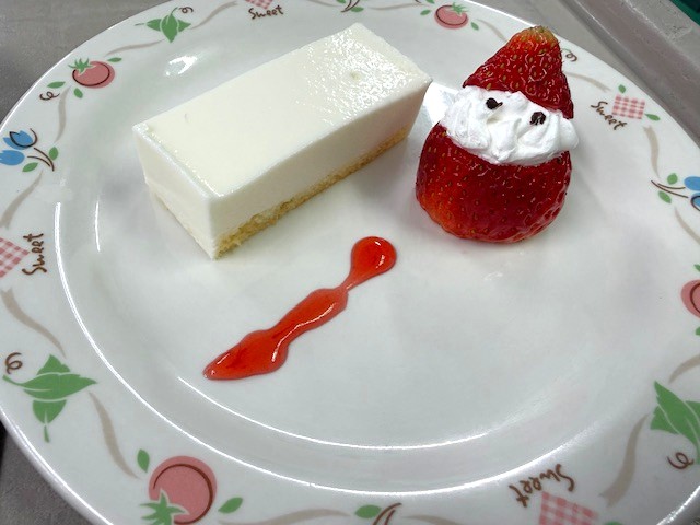 いちごサンタは常食の方には、フレッシュないちご、ソフト食の方はいちごゼリーで作ってみました。