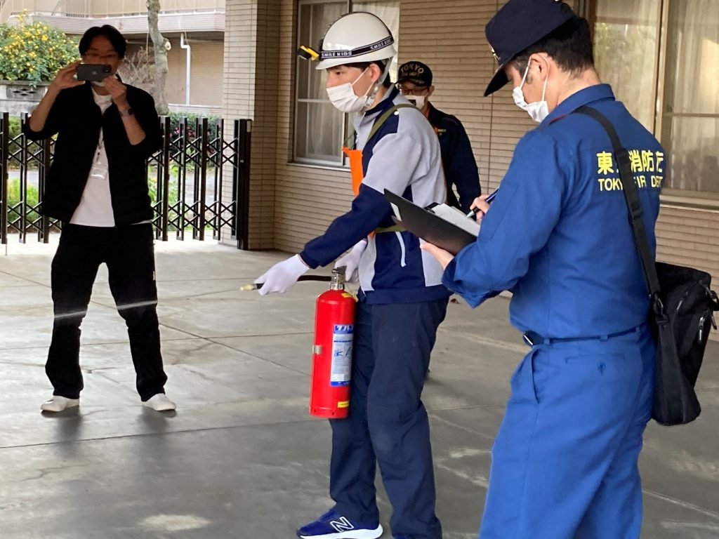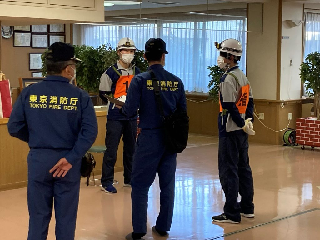 今年は施設の実情に合わせた訓練の確認を目的に、昨年までの集合形式での実施方法から変更。各施設に石神井消防署員の方たちが出向いて審査会を行いました。