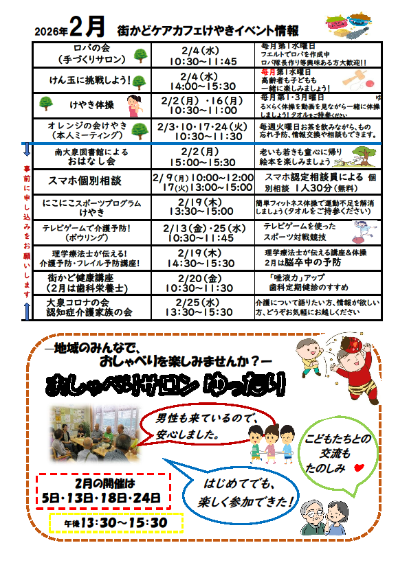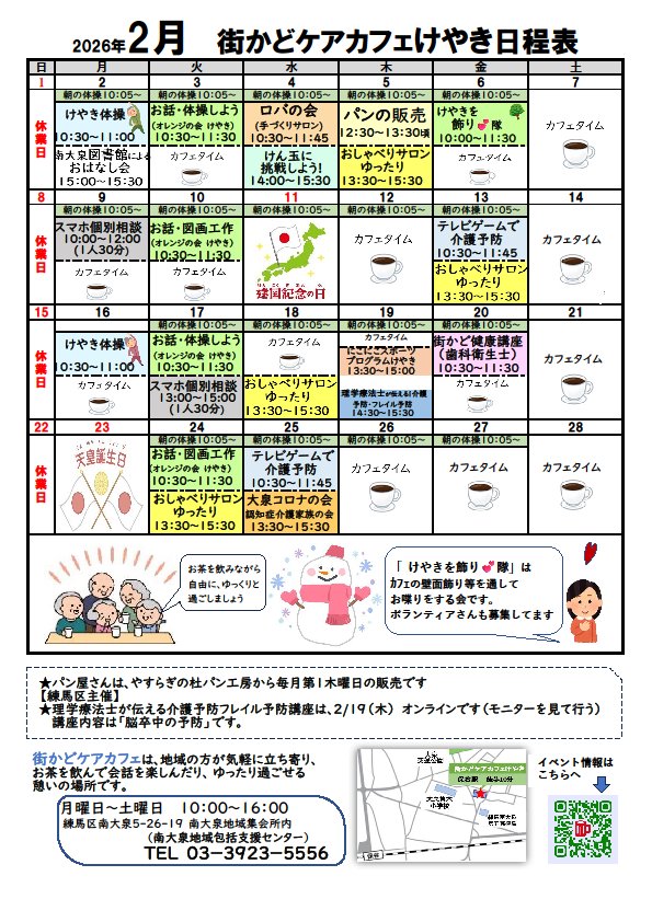 「街かどケアカフェけやき」2月のご案内☕