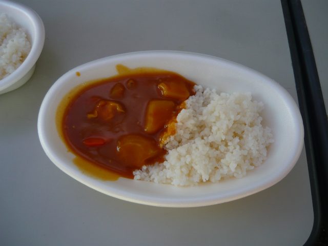 復興支援への募金をしてくださった皆様に、光陽苑の栄養士・給食業者が調理した「スペシャルカレー」をふるまう災害食のアルファ化米を実際に使用しましたが、