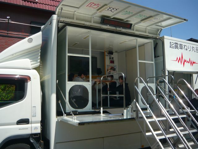 「起震車ねり丸号」震度6強を体験!テーブルの足をつかむのがやっと…。