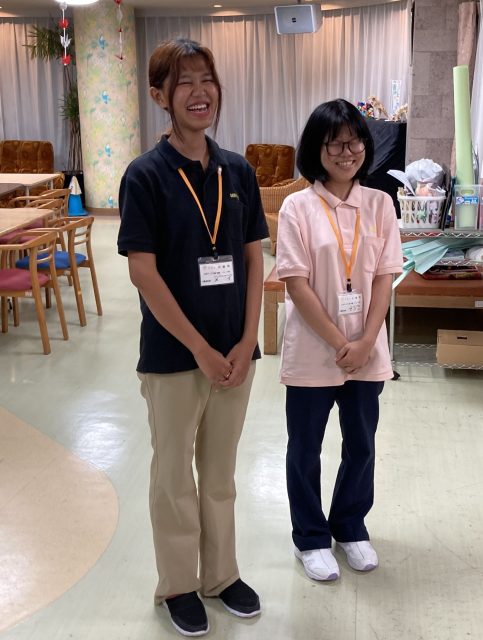 留学生の2人はミャンマー出身で、日々日本の介護について学び、ご入居者との関わりを通して実践的な経験を積んでいます。
