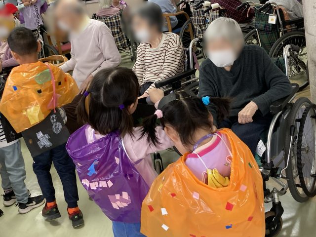 カボチャやおばけの飾りがついた衣装がとても可愛らしく、施設の中が明るい雰囲気になりました。