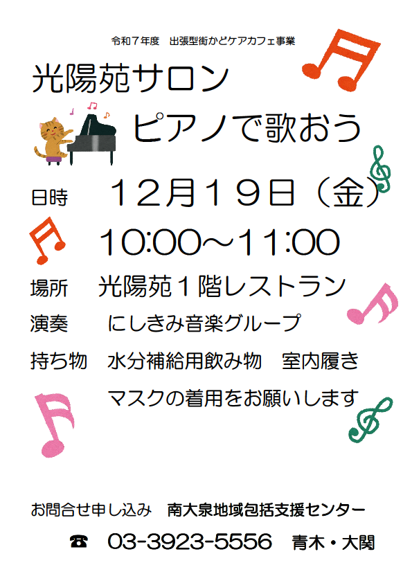 南大泉地域包括支援センターの出張型街かどケアカフェ事業の案内です。
