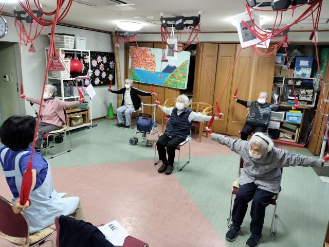デイサービスをご利用されている方達は、寒さを吹き飛ばすように元気に運動に参加されています。
