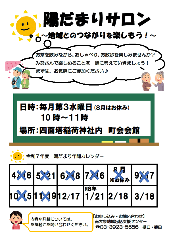 南大泉地域包括支援センターの「陽だまりサロン」の案内です。