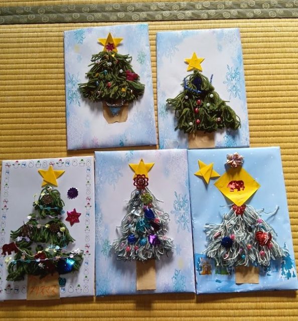 毛糸を使って、もみの木を作り、思い思いに飾りつけをしました。