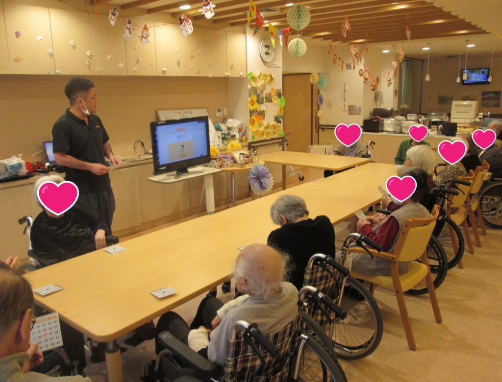 午後の部では食堂に集まっていただきビンゴ大会を行いました。職員がサポートしながらビンゴ大会を楽しんでいただくと共に景品を選ぶ喜びを感じていただけたと思います😄