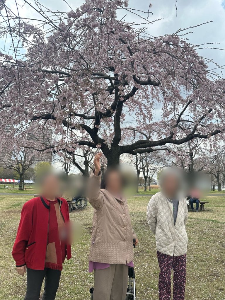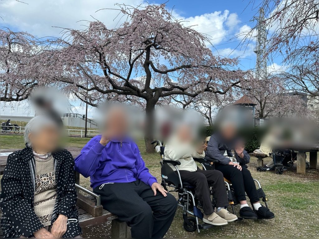 車で公園まで行き、職員と利用者様で桜咲く公園内をお散歩したり、景色を眺めたりと春を感じて頂きました🌸