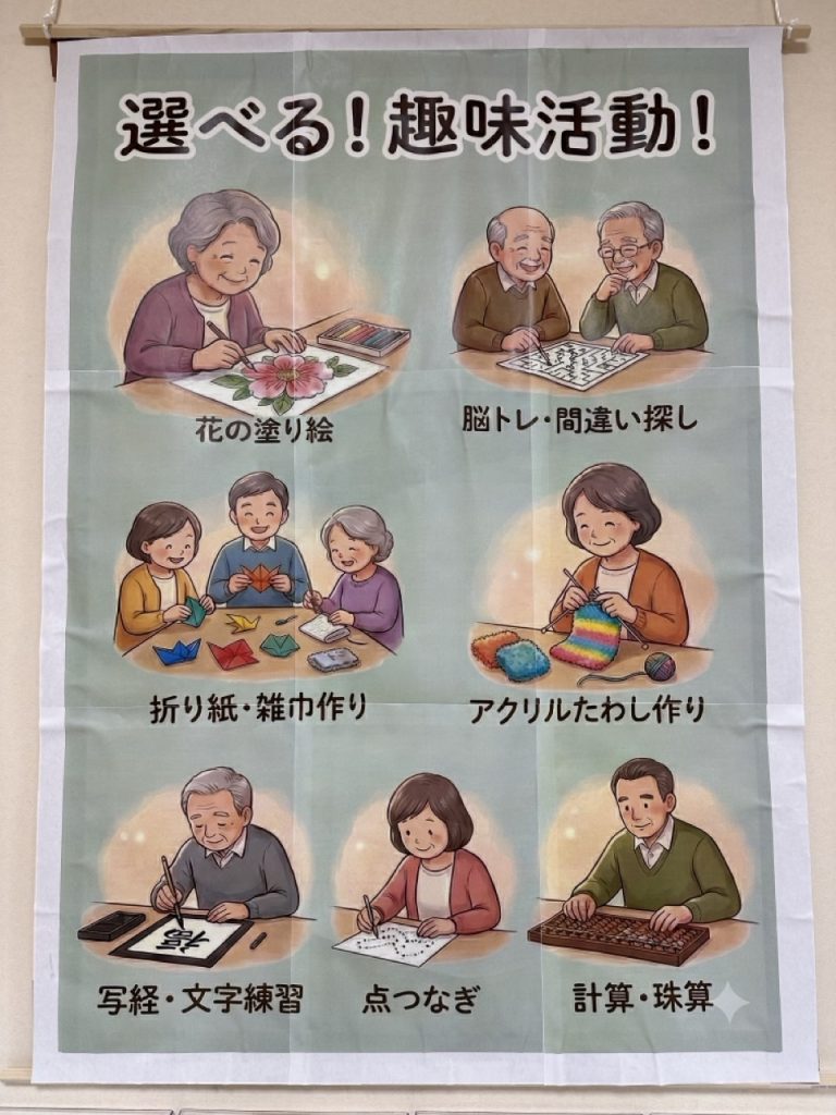 デイサービスでは趣味活動の一環で様々な物を提供させて頂いております。